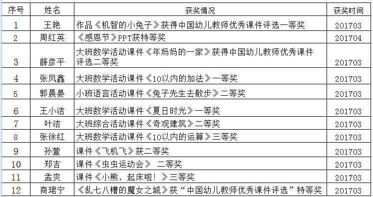 2016-2017学年第二学期教师教学业务及荣誉获奖统计