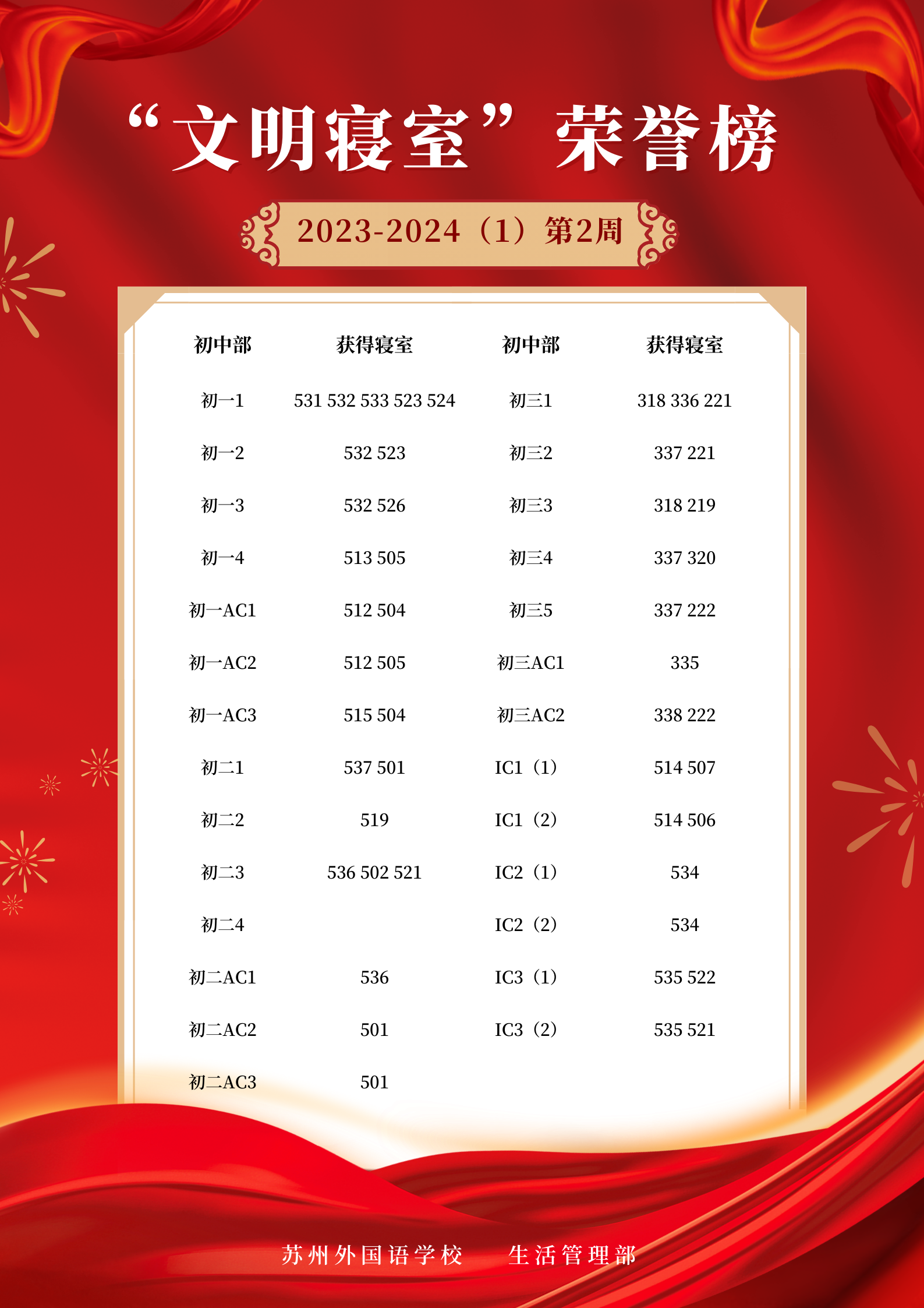 2023-2024学年第一学期第2周“文明寝室”荣誉榜