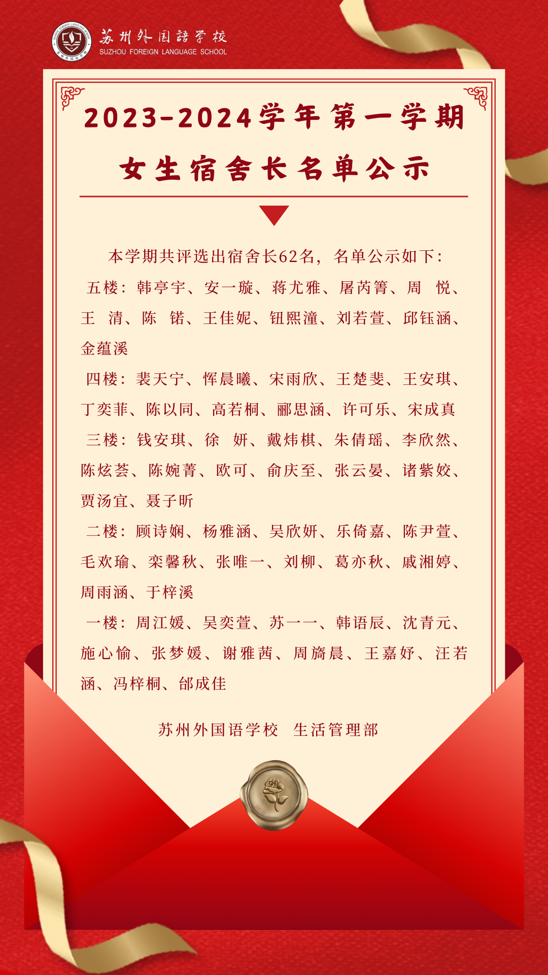 2023-2024学年第一学期宿舍长名单公示
