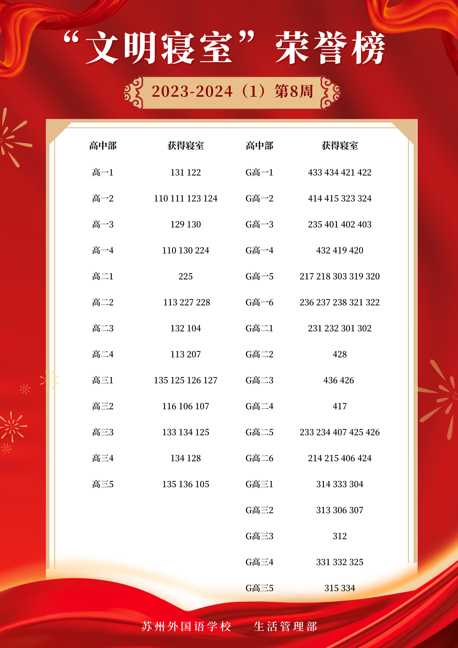 2023-2024学年第一学期第8周“文明寝室”荣誉榜