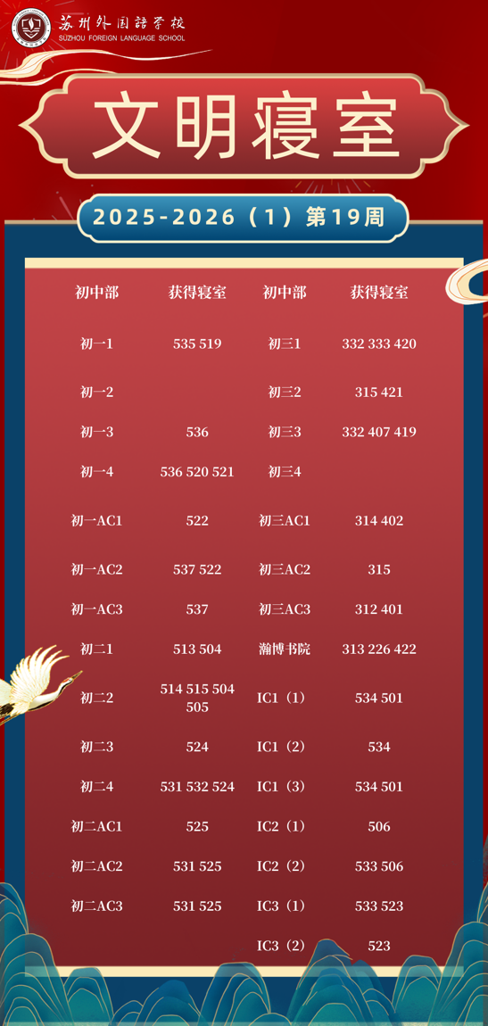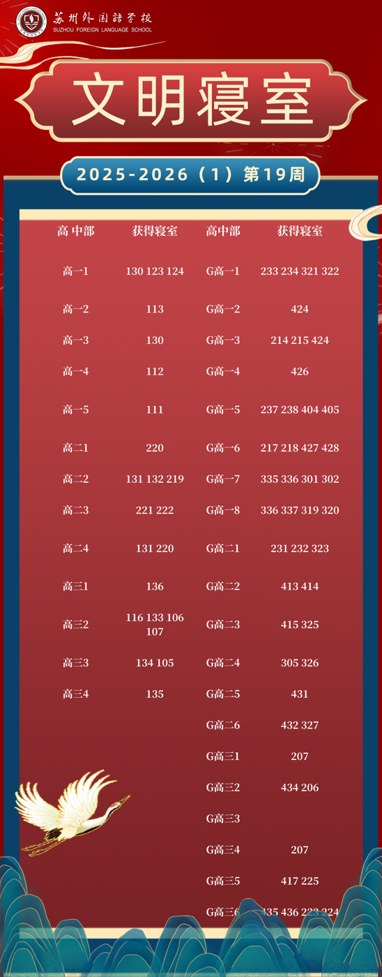 2025-2026学年第一学期第19周“文明寝室”荣誉榜