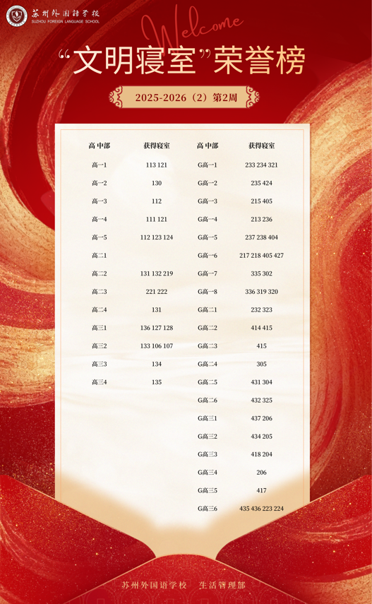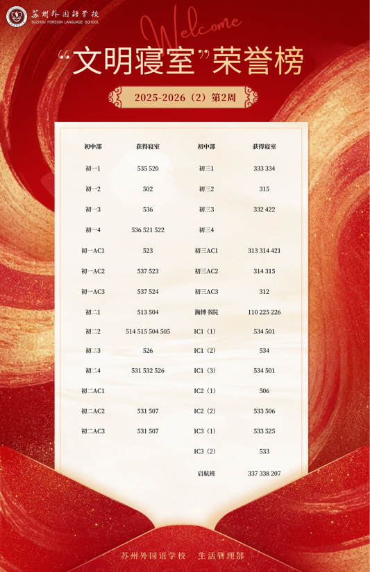 2025-2026学年第二学期第2周“文明寝室”荣誉榜