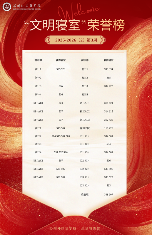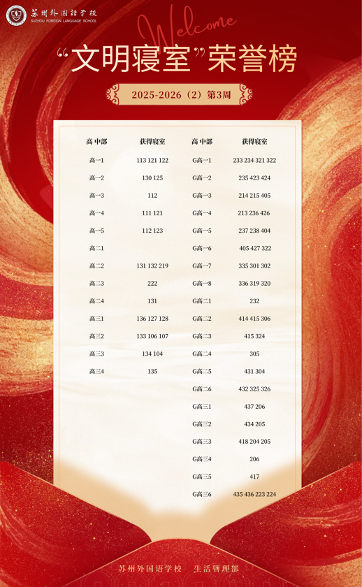 2025-2026学年第二学期第3周“文明寝室”荣誉榜