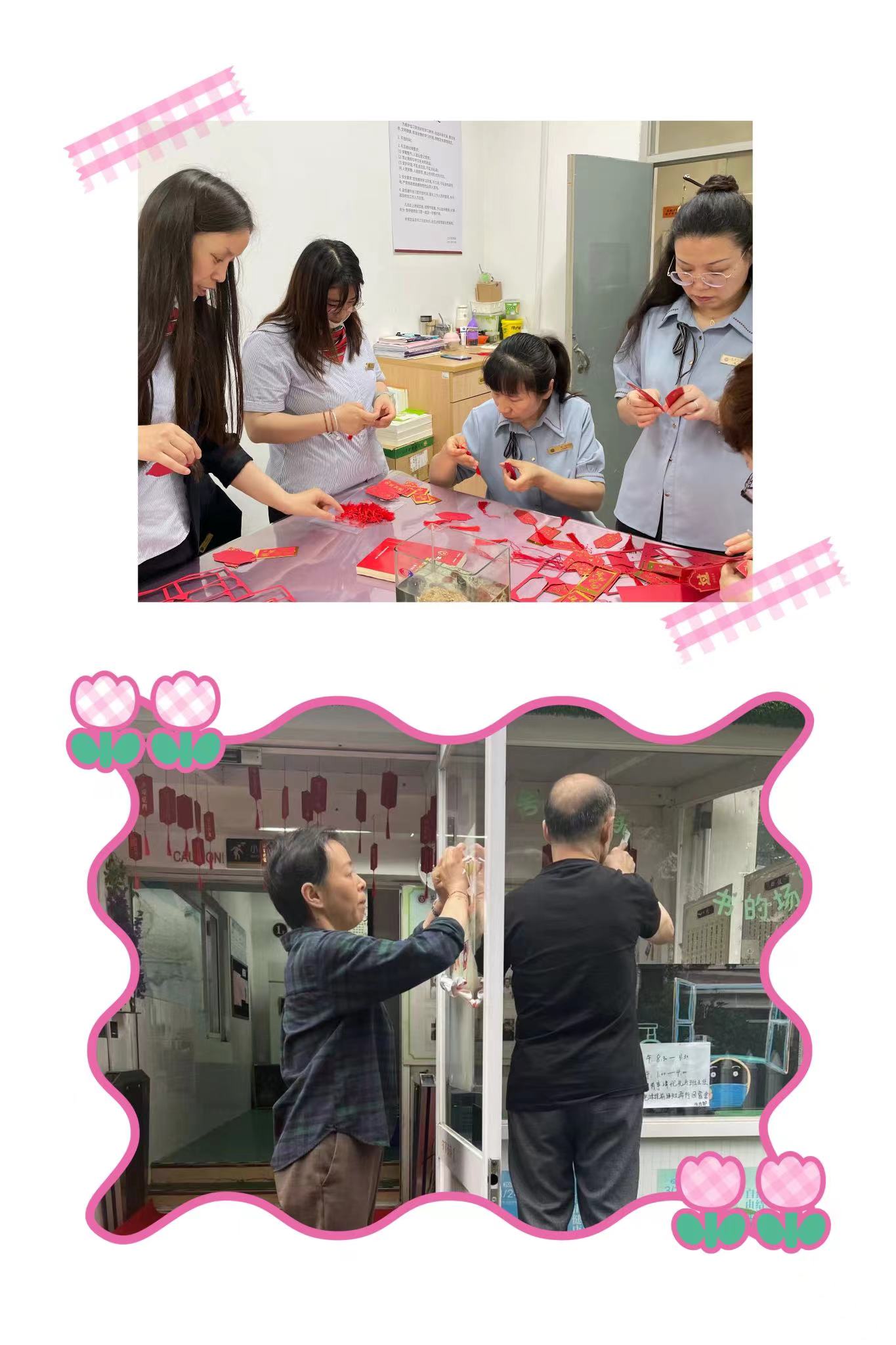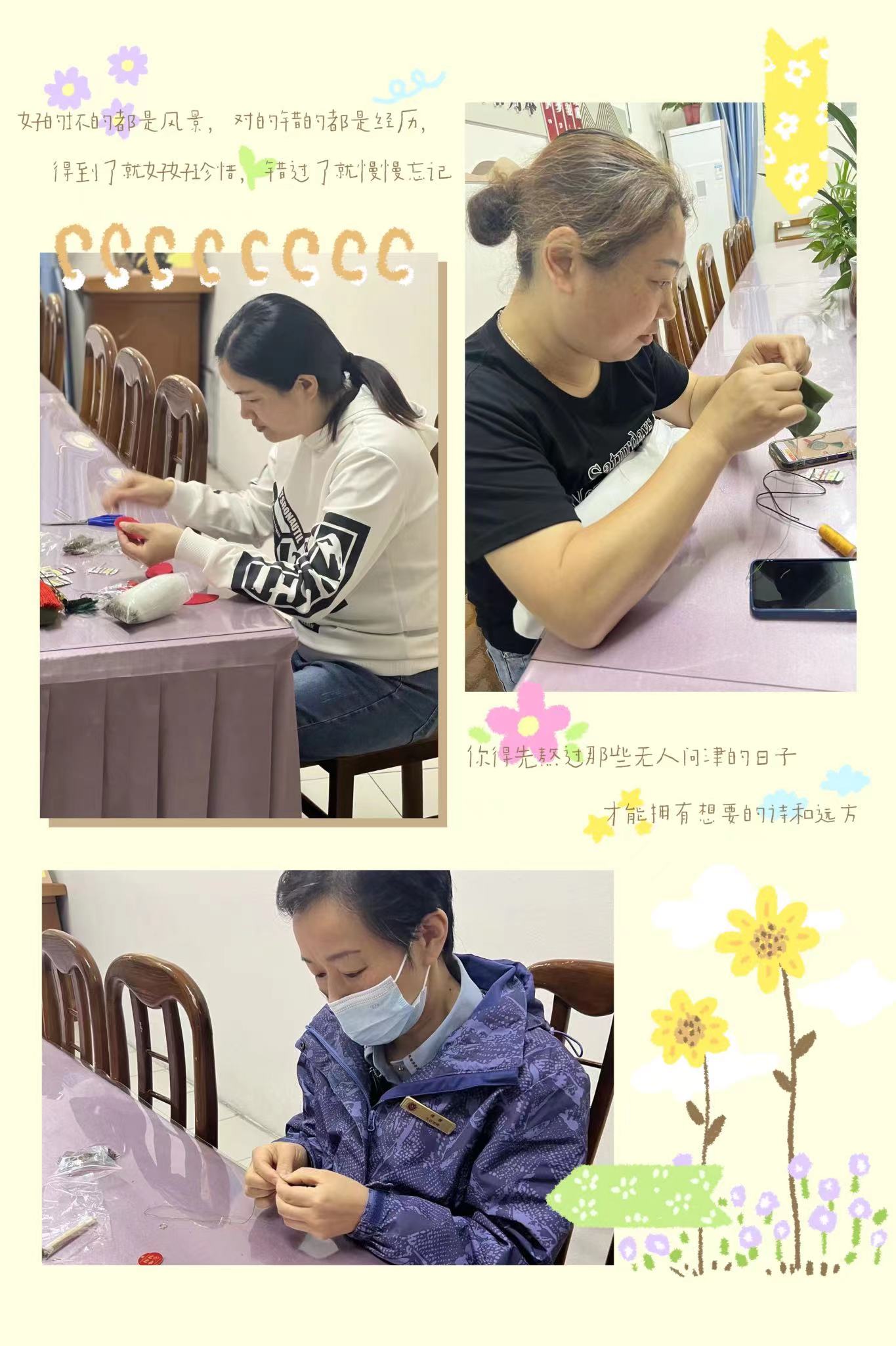 生活老师齐上阵,制作具有特殊寓意的手工挂件,为毕业班的同学加油鼓劲。