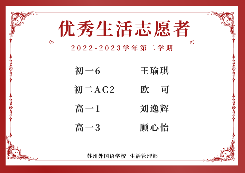 2022-2023学年第二学期优秀生活志愿者