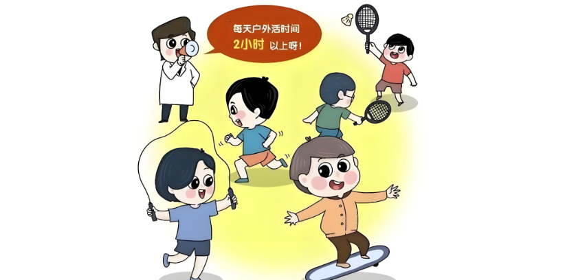 科学研究发现,户外活动时间与屈光度数和眼轴长度呈显著相关。户外活动接触阳光,能增加眼内多巴胺等活性物质释放,促进眼球正常发育并抑制眼轴变长,是防控近视有效、经济的方法。