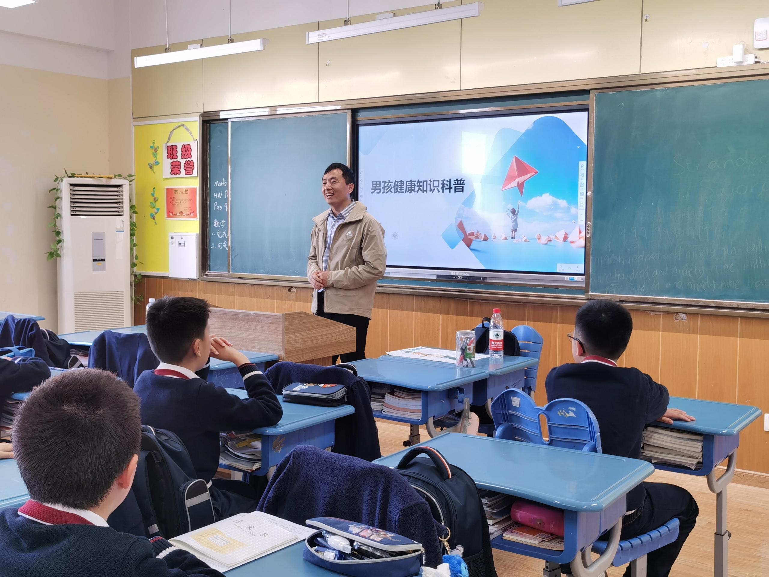 杨主任从男生的身体发育入手,详细讲解了青春期男生身体和心理的显著变化。他指出,青春期是男生一生中重要的成长阶段,也是身心健康奠基的时期。男同学们聚精会神地听着,不时在本子上记下重点。他们的眼神中流露出求知若渴的光芒。“青春期的男生容易出现情绪波动、焦虑和叛逆等问题,家长和老师需要给予更多的关注和引导。”杨主任语重心长地说。男同学们频频点头表示认同,他们深知良好的心理健康对于自己的成长至关重要。