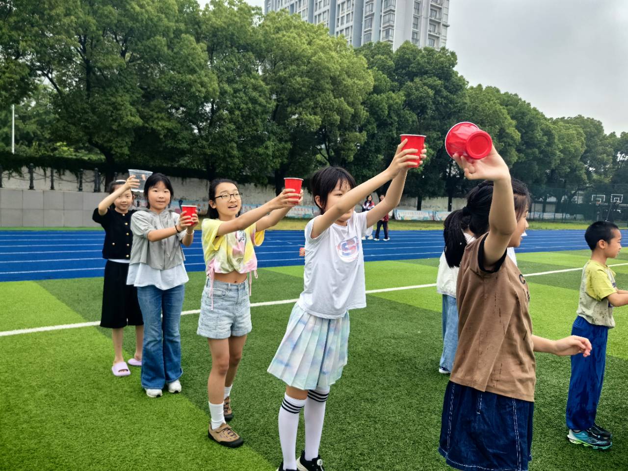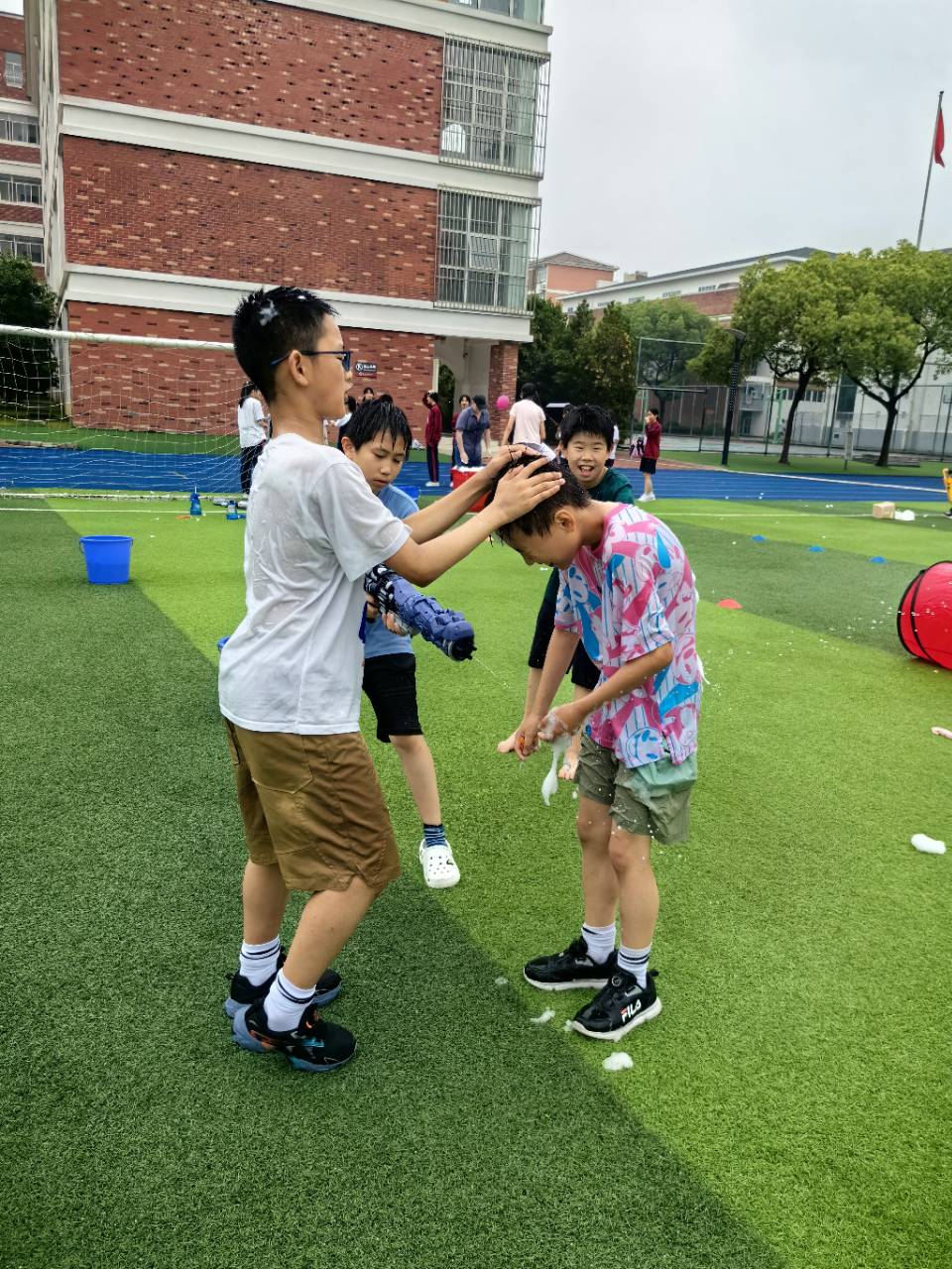 今年六一,学校在操场上开展了一系列玩水活动。英特五2的同学们整装待发,站在了操场上。待老师记录下这欢快的时刻后,同学们便组成小队,连蹦带跳地去体验玩水项目。