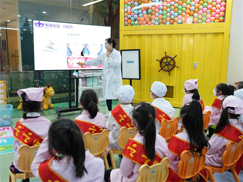 3月21日,正值春分,苏州外国语学校小学IC一(1)班的同学们来到明基医院口腔科,开展了“健康童行——小小医生体验营之口腔小医生”活动。