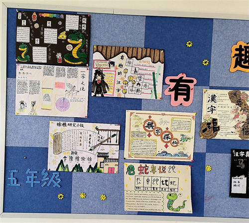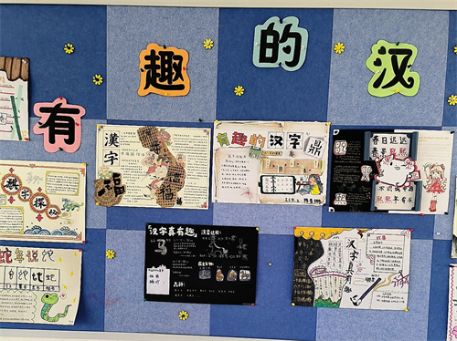 经过一段时间的研究,同学们将成果精心制作成一幅幅精美的小报。这些小报内容丰富、设计新颖,不仅有汉字演变的时间轴、不同字体的对比图,还配有生动有趣的汉字故事和汉字谜语。比如,在介绍“家”字时,小报上不仅展示了甲骨文“家”字的形态,还讲述了远古时期人们将猪养在屋内,以表示有稳定生活的含义;关于“笑”字的板块,附上了“一人一张口,口下长只手”的谜语,让大家在趣味中加深对汉字的理解。