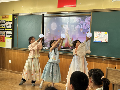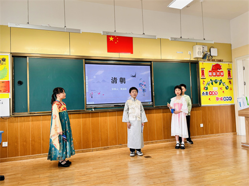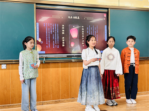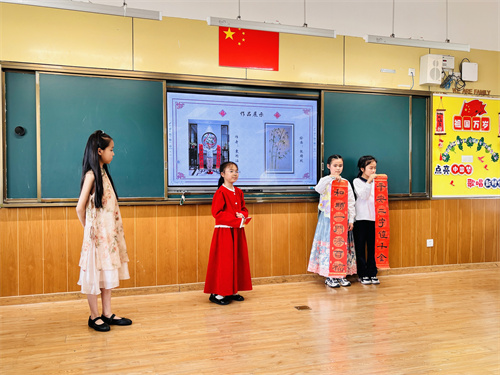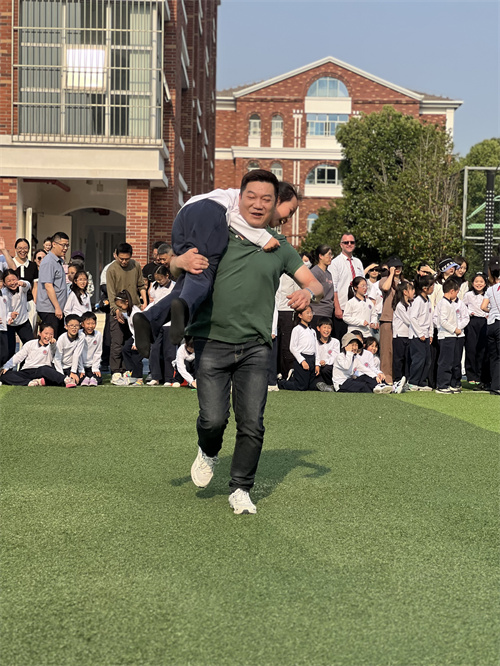 本次活动分为三个环节。首先是“中华传统节日文化”实践活动展示。IC三年级3个班的同学结合本学期语文第三单元“传统文化”的主题,分小组进行了不同传统节日文化的汇报。在浩渺如烟的历史长河中,我们的祖先不仅为我们留下了宝贵的物质文化遗产,而且为我们留下了丰富的非物质文化遗产。从传统节日的由来到各个节日的习俗,再到华美的朝代服饰,孩子们用丰富多彩的形式展示自己对传统文化的理解,并借此机会传播给家长和同学。接着,各学科老师就上半学期的学习跟家长们作了简短的交流。最后,全体家长和学生一起来到操场参加了两项亲子体育游戏:家长背孩子,孩子穿鞋子,一起跳荷叶;跑来跑去翻牌找班级。在奔跑、接力、呐喊和加油中,大家体验了亲子同行的快乐和运动的激情。