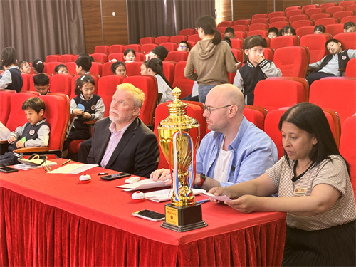 今年的活动在Callum 和Kevin两位外教的主导下自4月初有序开展,与往年不同的是六个年级的同学分成了六场,每班会有2个队伍参加最后的决赛。4月29日上午,在六楼报告厅首先举行的是三年级的决赛。6支在班级比赛中胜出的团队在报告厅的舞台上进行最后的角逐,四轮比赛井然有序又紧张激烈,小选手们时而蹙眉思索,时而微笑拼读,时而围圈商讨,时而自信作答。最终来自IC3.3 班的第六小组获得冠军,这也是该班级在此活动连续夺得的第三次冠军奖杯了。
