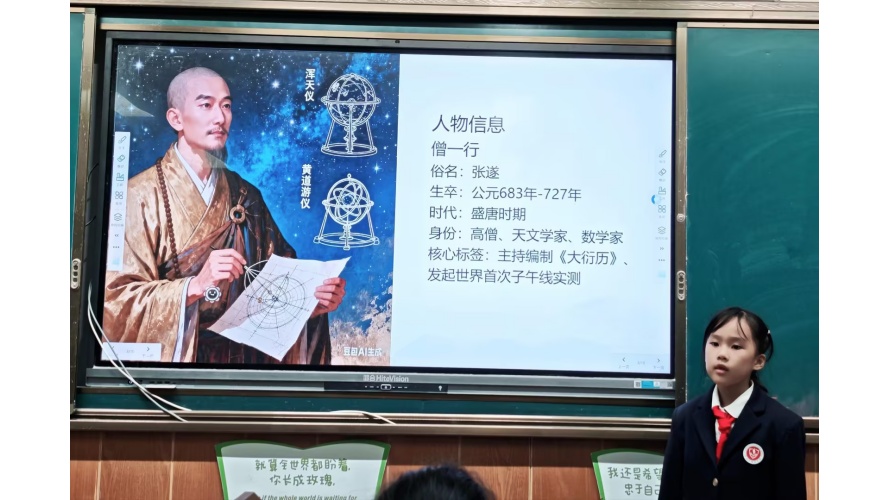 "我是东汉时期的张衡,"IC二(2)班的孩子戴着自制的官帽,指着身后的图纸说,"我发明了世界上第一台地动仪,还能观测星空,编写了天文著作《灵宪》。"