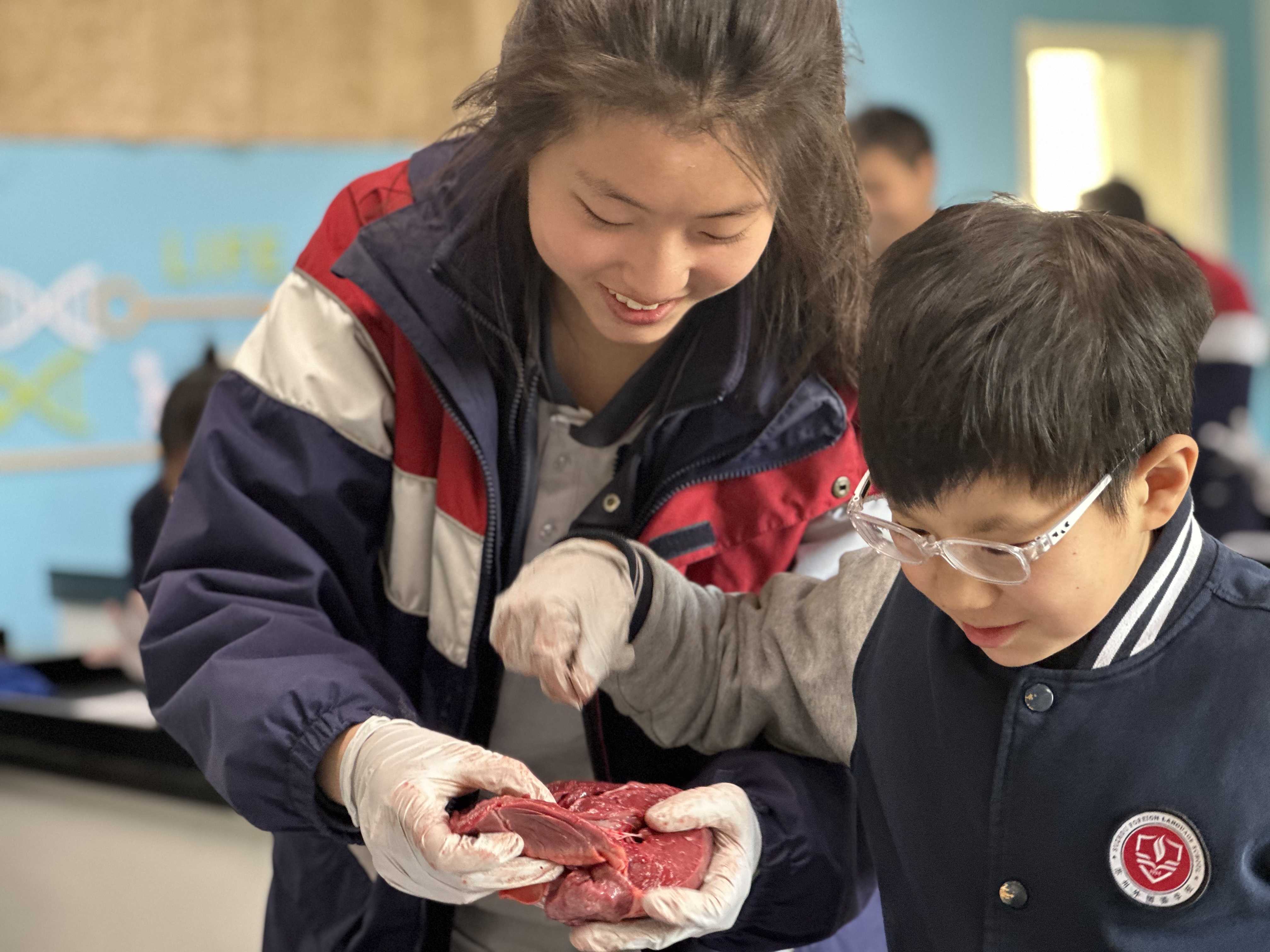 3月中旬,小学IC的同学们第一次来到生物实验室,在初中IC的学长们的带领下共同完成了一次猪心脏的解剖。