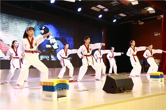 这六年里,孩子们最感谢的就是他们可敬可亲的老师们了。忘不了他们在讲台上的风采,语文原继明老师的幽默博学,数学梅波老师的细致讲解,英语王敏老师的温柔亲切……一段段老师们上课的场景是孩子们关于校园最难忘的回忆。每位老师还录制了祝福视频,临别之际给孩子们送上毕业祝福和期许,盼望孩子以后多回母校看看。孩子们送上一束束鲜花,表达对他们敬爱老师的感恩之情。除了师生之间浓浓的情意,孩子们六年的相处也让他们之间的同窗情谊日益深厚,超越友情,胜似手足之情。海六班的Franz和程御绮表演的相声《海六大宝》说的就是海六班的每一个可爱的“大活宝”,幽默打趣的话语中表现出对彼此的了解和亲近,两个孩子的表演收放自如,捧哏逗哏幽默自然,令台下的观众捧腹大笑。最吸引人眼球的就是跆拳道表演了,作为他们在苏外舞台上的最后一次演出,他们卯足力气,气势十足,一招一式都能看出他们六年的功底,引来台下的学弟学妹们和家长们的连声惊叹。