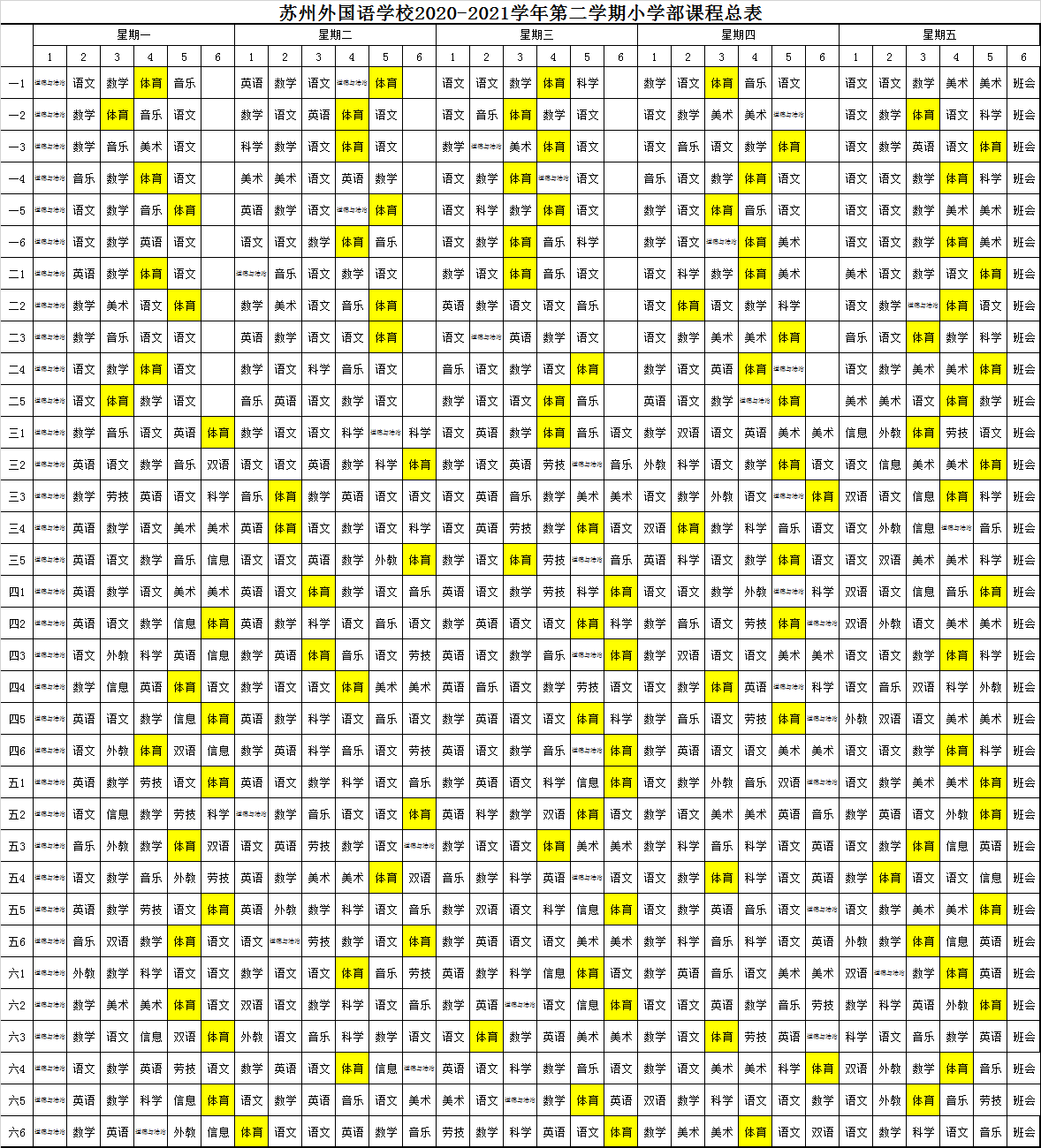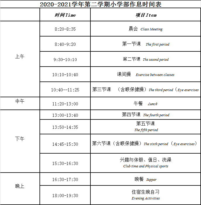苏州外国语学校2020-2021学年课表