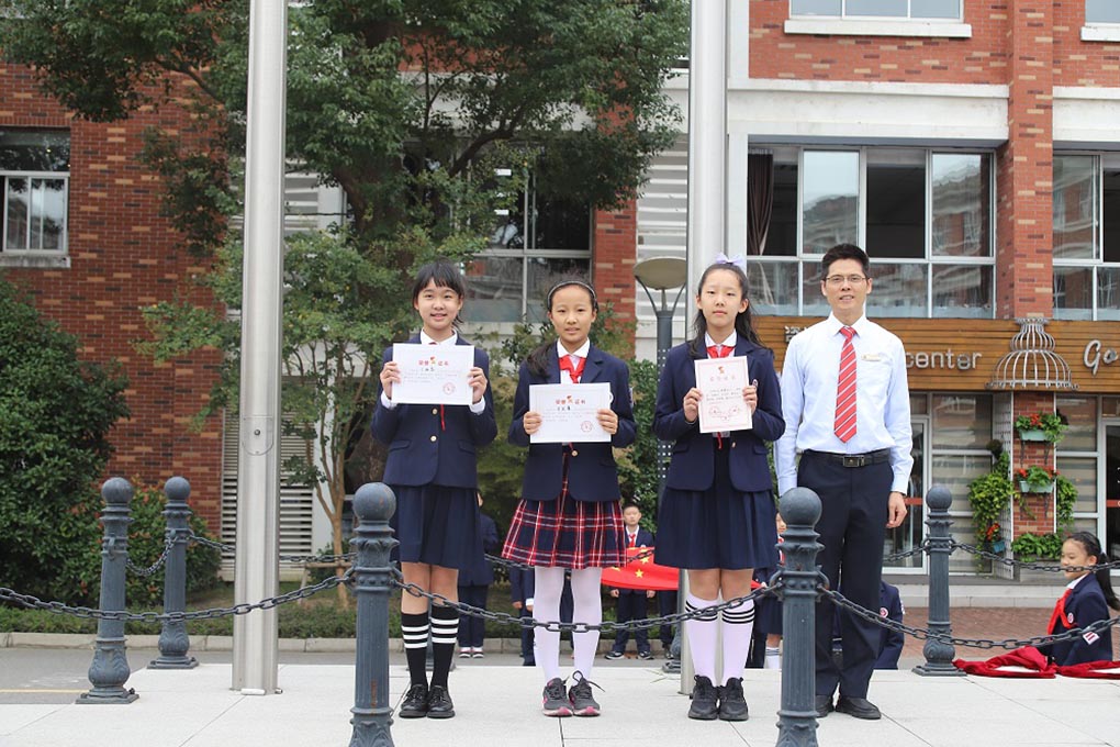 周一升旗仪式上,随着铿锵有力的颁奖曲的响起,丁涵蕊同学阔步走上领奖台,接受校领导颁发的证书。这张沉甸甸的火红的证书来自江苏省少工委。在2023年百万少年争当“江苏好少年”展评活动中,丁涵蕊同学因表现突出,荣获“江苏好少年”称号,这荣誉是对她多年来优异表现的肯定与鼓励。