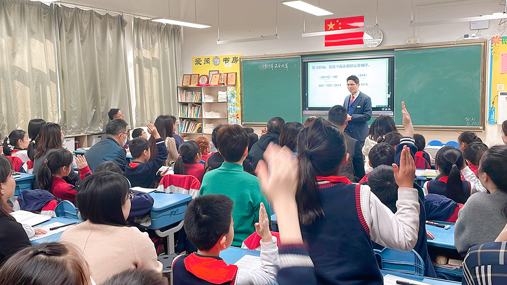 蔡杰作为学部领导,率先在课堂使用智慧笔,在四1班执教《含有小括号的三步计算混合运算》一课。蔡主任用心制作了课堂任务学习单,在课堂运用智慧笔,让学生的练习及时有效地呈现在课堂上,得到及时有效的反馈。家长感慨道:“要是我小时候也有这样的方式上课,我的数学也能有很大突破。”