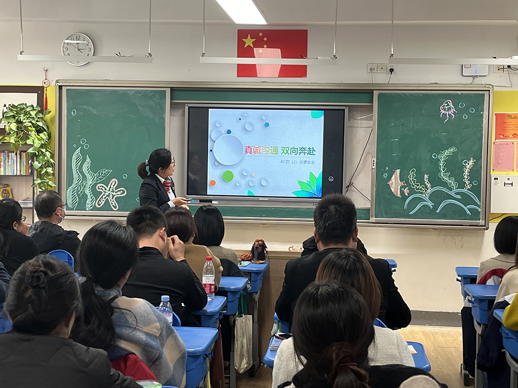 昨天下午参加了AC四1班的期中家长会,感谢三位主课老师精彩的分享,温柔而不失严厉的班主任秦老师,慈祥也不失专业的数学邵老师,凌厉却十分可爱的英语陆老师。本人虽然也在教育界混迹多年,面对的却是18岁以上的成年学生,而面对10岁左右的小学生,老师们显然比我更有经验。每次听老师们的分享,我都会意识到自己对于孩子学习习惯和学习方法培养的欠缺,意识到家校策略的重要性。教育,靠的不仅仅是知识的传播,更重要的是悉心的引导和耐心的陪伴。有这么优秀的三位老师,有这些积极向上的家长们,AC四1班永远是最棒的!让我们一起走得更好、更远!——AC四1周思邑家长