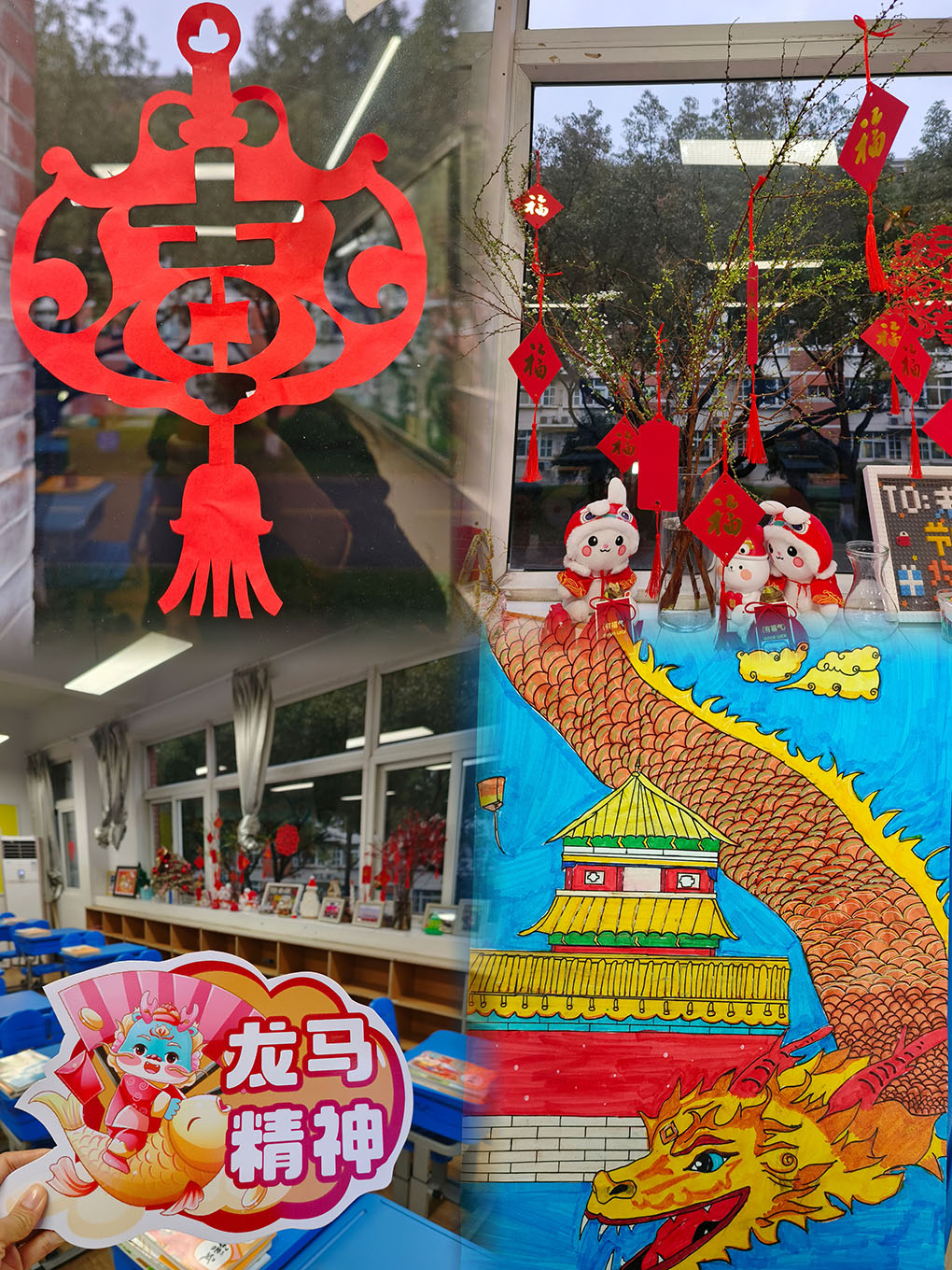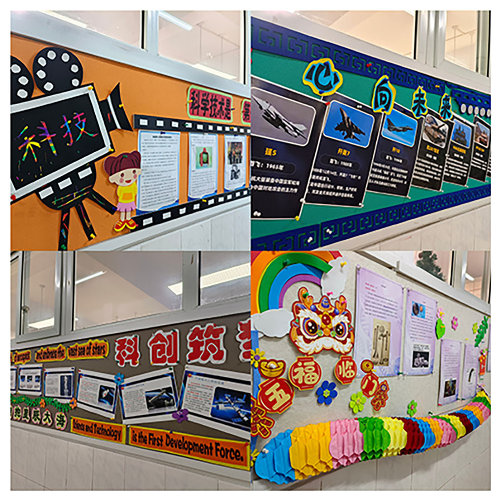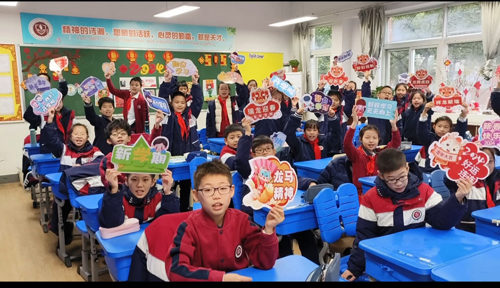 最美的相遇,从“爱”开始。为了迎接孩子们回归校园,四年级的六位班主任们提前好几天就开始精心布置班级环境。生机勃勃的植物角,充满书香的图书角,贴着窗花,挂着祝福的教室,“心向未来 科技创新”走廊文化的布置,无一不洋溢着龙年的喜庆与新学期的祝愿。