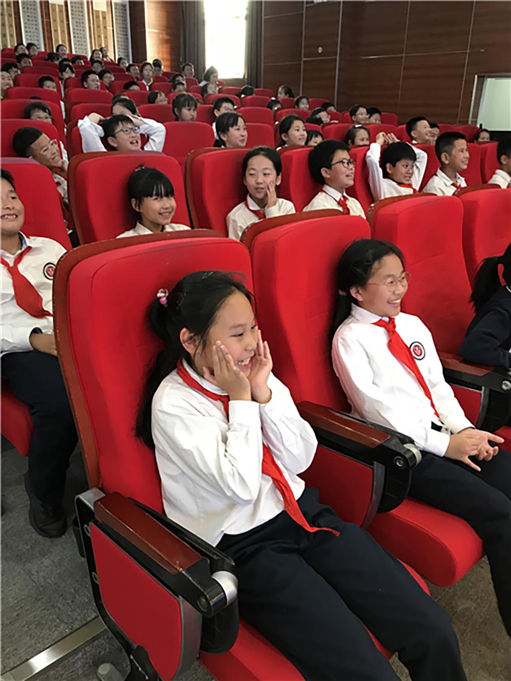 这次,由于是给三年级的孩子带来讲座,所以他继续沿用了一贯的幽默风格,深入浅出地讲解了语言的艺术,让孩子们在欢乐中感受到了语言的魅力。