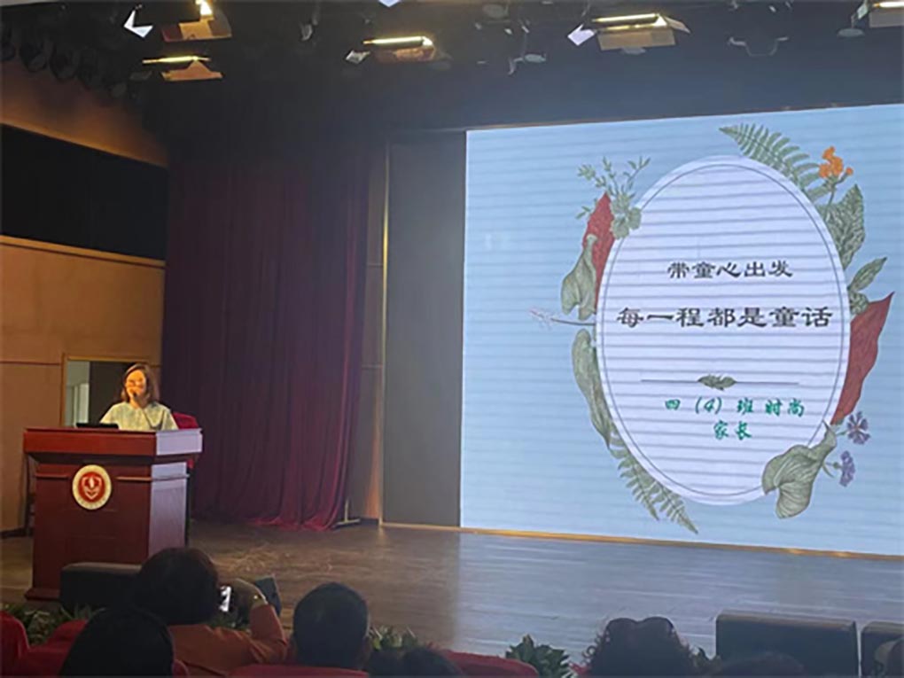 四(2)班的金依诺妈妈和家长们分享了如何加强家校合作,共同为孩子们营造一个良好的成长环境的经验。