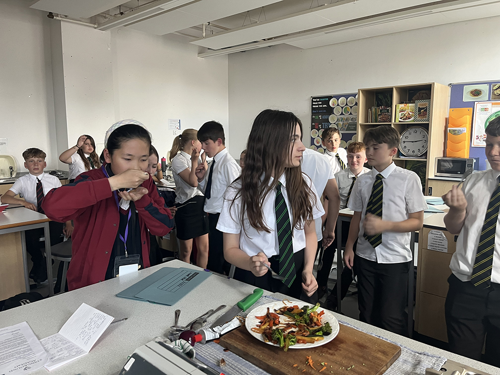 在校长的鼓舞下,同学们兴致勃勃地跟着小伙伴们走进不同的教室,深入英国的课堂学习,才发现原来中英两国的教育方式和课程设置完全不同。这里的中学生每天只有五节课,下午三点就放学了。英国的课堂实行走班制,在课间,学生需要赶往下一节课的教室去上课。每节课都是一小时,上午4节课后,午饭时间已经到了下午1点25分。此外,英国学校的课程设置更加注重实践和项目学习,让学生更好地将理论知识应用到实际中去,如厨艺课、木工课、缝纫课,让同学们在学习书本知识之余,也参与到手工制作中,增强动手能力与沟通合作能力。还有闻所未闻的宗教课、性教育课等,使苏外学生开拓了视野,以开放包容的心态拥抱世界的多样性。从教学方式而言,中国更加注重传授知识和应试技巧,学生通常需要大量背诵和练习以备考试。而在英国,教学更加注重培养学生的批判性思维和独立学习能力。老师会鼓励学生参与讨论和独立思考,这种互动式的教学方法让学生更容易理解和吸收知识。李翼轩同学对Technology课程最感兴趣,一起来看看他的介绍吧。
