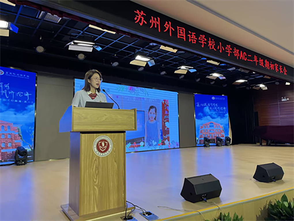 最后教导处蔡杰主任向家长介绍了各学部上一学年的丰硕成果,苏外的师生们秉承着追求卓越的校风,一步一个脚印,书写着苏外的荣光,累累硕果是他们拼搏的见证。他强调对孩子习惯培养一定要更加重视,从学习习惯、生活习惯、运动习惯到劳动习惯,家长一定要做一个智慧的引领者,以身作则培养孩子习惯,引导孩子从被动到主动,从他律到实现自律。