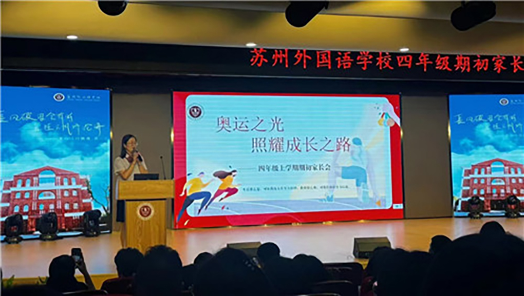 金秋十月,苏州外语学校的会议室被阵阵温馨与热情所充满。在这充满诗意的季节里,学校召开了四年级上学期的家长会,活动以一段充满力量与启示的奥运冠军潘展乐专访视频拉开序幕。在此次家长会中,教育专家和各科教师们与家长共同探讨了如何养育出积极向上、情绪稳定的孩子,并展望了学校教育改革的新举措。