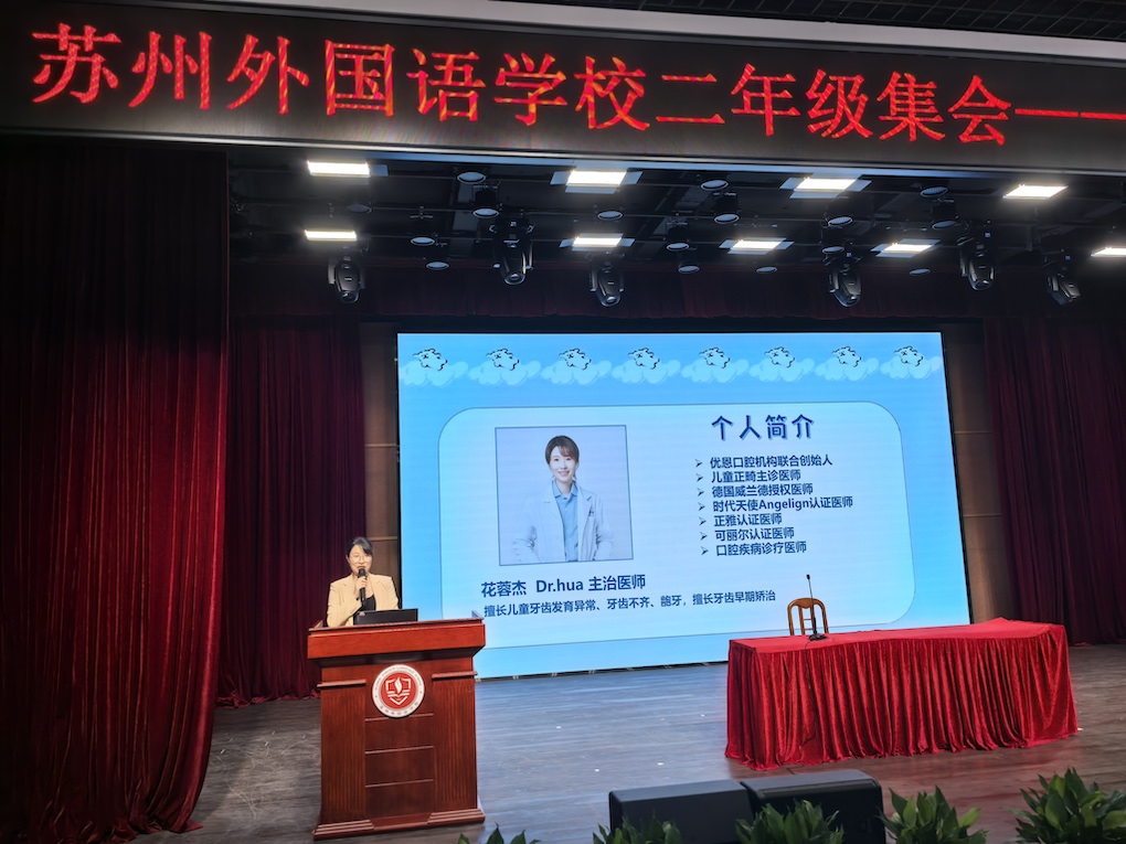 儿童期是保护牙齿的重要时期,口腔是人类健康的第一道屏障,口腔健康对全身健康产生必然影响。为帮助孩子们养成良好的口腔健康习惯,传播健康护牙知识,增强儿童口腔健康意识,让孩子拥有一口洁白、健康的好牙, 2024年10月16日,二年级特邀优恩口腔主治医师Dr.hua前来为全体同学开展“守护微笑,从‘齿’开始”专题讲座活动。