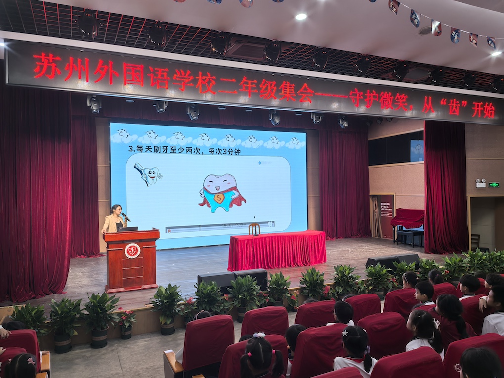 一直以来,苏外高度重视学生的健康教育,本次二年级的集会活动不仅增强了同学们的口腔保健意识,更在他们心中种下了爱护牙齿的种子。愿每一位孩子都拥有健康,都能绽放出最美丽自信的笑容!