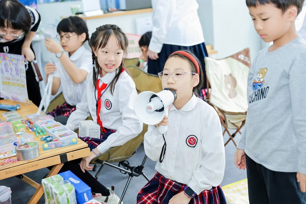 当天,尹山湖美术馆内,秦老师带领着苏外五年级组数百组家庭,与吴中区妇联儿童友好观察团以及吴中区特殊教育学校的小朋友们齐聚儿童跳蚤市场。他们带上闲置的玩偶、玩具、绘本画册、手工艺品以及手工制作的小蛋糕、甜品等,像大人一般,有模有样的摆起了摊,成为“小小摊主”。他们的“收款码”是苏州外国语学校发起的“为困境儿童筹集爱心”项目二维码,这些小朋友们售卖二手闲置的收入,都会作为善款用于捐赠那些有需要帮助的小朋友。