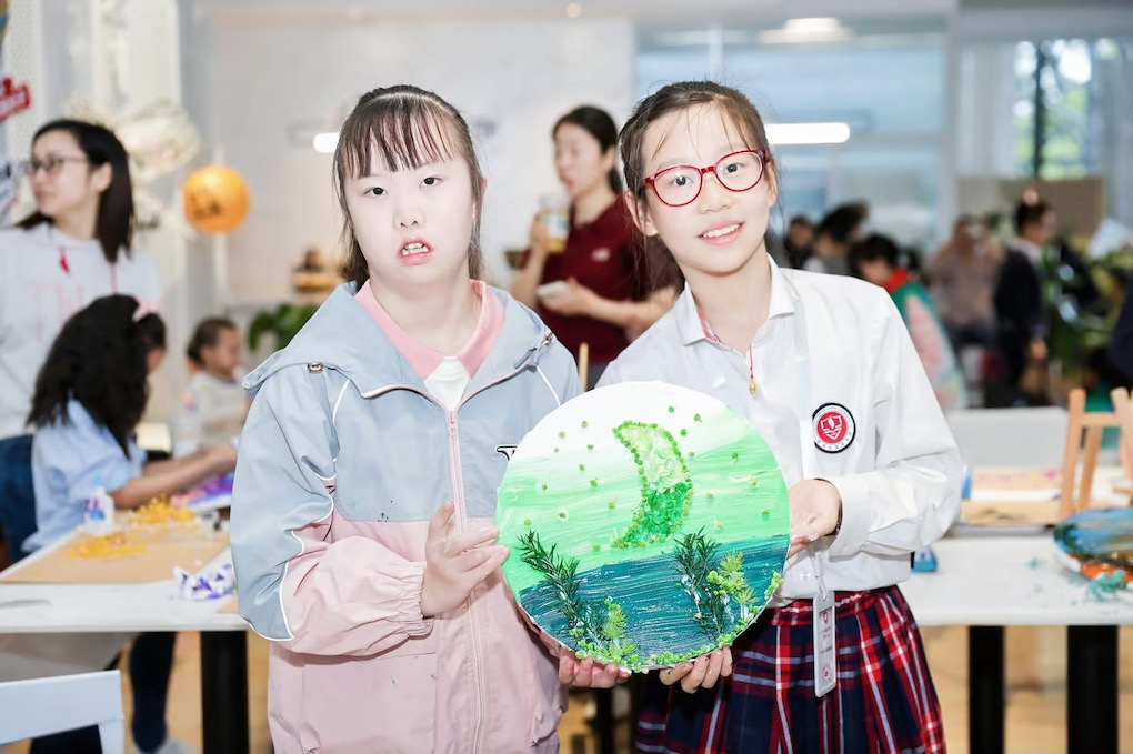 10月19日,苏州外国语学校小学部五年级122个爱心小天使在年级组长秦菊芳老师的带领下,在尹山湖美术馆与吴中区特殊教育学校、吴中区妇联儿童友好观察团的小朋友们,一起度过了一个暖心、难忘的周末。