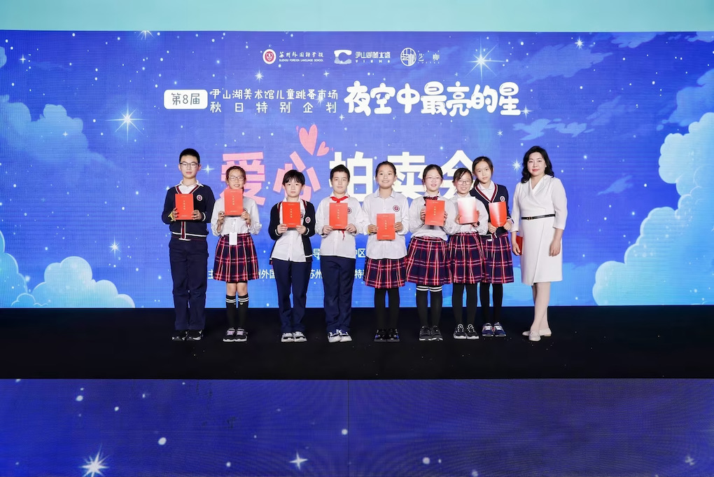 本次尹山湖美术馆携手苏州外国语学校五年级小朋友们共同完成“夜空中最亮的星”社会公益活动圆满结束。据悉,苏州外国语学校五年级的这群孩子们一直行动在公益之路,他们在秦老师的带领下,为爱而跑,为爱而歌,为爱而舞……“夜空中最亮的星”系列公益活动已经开展了第4期,这些活动在孩子幼小的心里点亮了一盏灯,一盏爱心公益的明灯,让他们勇担社会责任,成为对国家有贡献的人。孩子们用一颗颗童心与爱心,汇聚成璀璨星星,点亮夜空,为更多需要帮助的人带去温暖和光亮,让爱心传递!