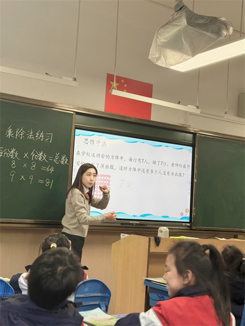 2班刘老师执教了《表内乘除法练习》,从基础训练到拓展提升,孩子们在一次次闯关中巩固了乘法口诀,提升了分析问题的能力。看似普通的练习课,但无论是刘老师的层次设计,还是孩子们的课堂发言,都充分展示了苏外课堂的高度。孩子们优秀的课堂常规也赢得了观摩家长们的一致好评。