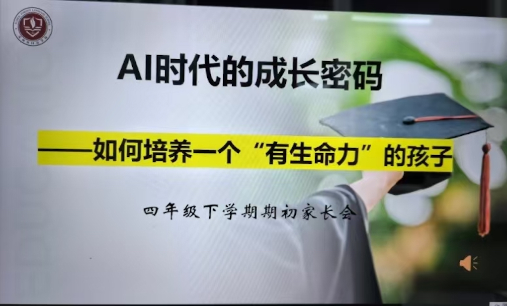 在2月26日召开的家长会上,年级组长以《AI时代的成长密码——如何培养一个“有生命力”的孩子》为主题,为家长们带来了一场精彩纷呈的微讲座。讲座围绕创造力、批判性思维以及抗压与适应力三大核心能力展开,旨在探讨如何在AI技术飞速发展的背景下,帮助孩子们成长为具有独立思考能力和创新精神的新时代人才。