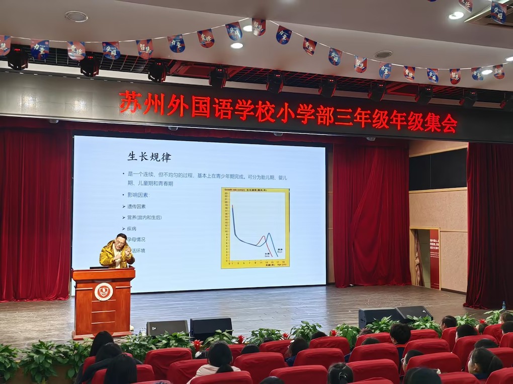 2月27日晚,苏州大学附属儿童医院感染科处长虞景主任医师走进苏外,为三年级的同学们带来了一场生动有趣且干货满满的科普健康讲座。