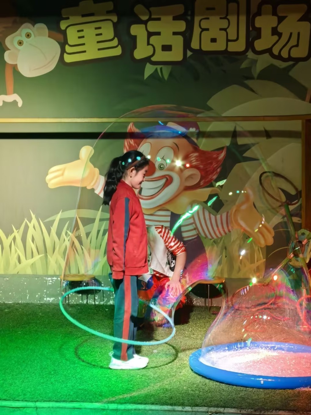 而童话剧场的演出更是萌宠乐园的一大亮点。聪明的小狗们一登场就吸引了所有人的目光,它们就像训练有素的杂技演员,钻圈圈、跨栏、倒立行走等动作一气呵成,丝毫不费力气。当它们和饲养员一起跳绳时,默契的配合更是赢得了台下阵阵掌声和欢呼声。沉稳淡定的山羊先生也不甘示弱,它在高空独木桥上稳步前行,每一步都走得坚定而自信。看着山羊先生成功完成表演,孩子们都不禁为它捏了一把汗,同时也为它的勇敢和高超技艺鼓掌称赞。最后,小丑先生带来的泡泡秀将演出推向了高潮。他手中的道具仿佛有魔法一般,大泡泡、小泡泡接连不断地从他手中飞出,有的像星星一样闪烁,有的像小房子一样巨大,五彩斑斓的泡泡在灯光的映照下如梦如幻,让孩子们沉浸其中,发出阵阵惊叹。