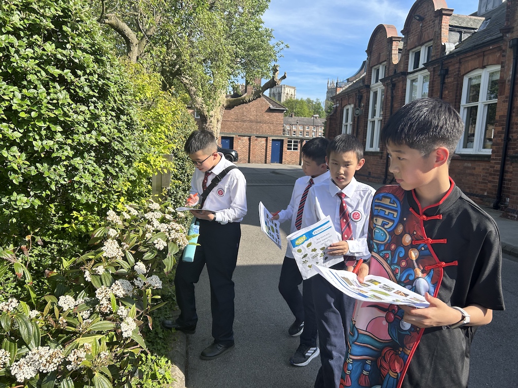 中国学生们随即进入班级体验原汁原味的英式教育。每位中国学生都有一位英国伙伴全程陪同,在艺术课上,大家用画笔描绘约克的风景;在自然科学课中,探索生物奥秘;在信息课上学习编程思维;在数学课上,中英学生用不同的解题方式相互启发。课程从室内延伸到户外,让中国学生们真正感受到英式教育的开放与互动。,两国少年在校园林间边记录物种边交流各自校园生活,欢声笑语不断。