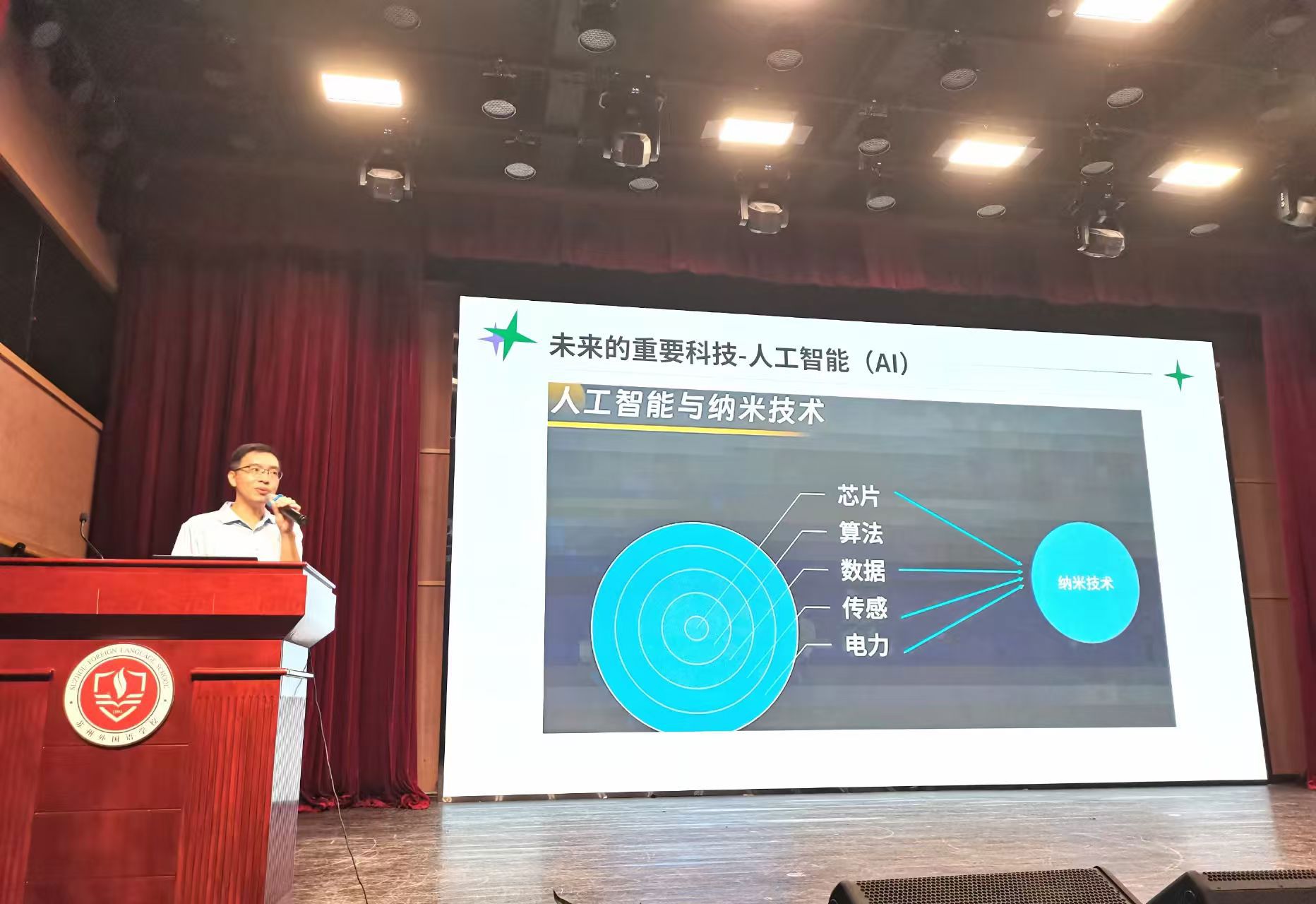 第一部分,主讲嘉宾用4岁儿童、苍蝇、头发丝、红细胞、丙肝病毒、碳纳米管、水分子等熟知的事物,来说明纳米是一种多大的长度,并畅想了纳米科技在尺度上的终极目标。第二部分,主讲嘉宾从声、电、光、磁、力五个方面,介绍了纳米状态下金属熔点、色彩的变化,以及超顺磁性、量子隧道效应、电子扫描隧道显微镜等大家感兴趣的话题。第三部分,主讲嘉宾则分享了人工智能、纳米材料、太空电梯、纳米药学、纳米脑科学等众多科学知识。第四部分,主讲嘉宾给同学们介绍自洁玻璃、无色防晒霜、蒙脱石散等生活中常见产品所包含的纳米科技。