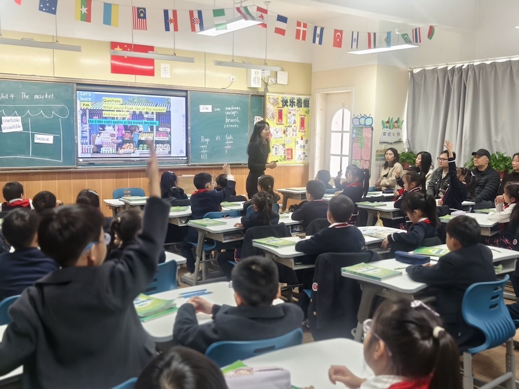 下午两点左右,随着上课铃声响起,各班进行着别开生面的学科展示课。英语课堂上,老师以趣味儿歌导入,孩子们用稚嫩却流利的英语进行情景对话、单词接龙,课堂上笑声与应答声交织,充分展现了“听说为先、兴趣为引”的低年级英语教学特色;展示课没有刻意彩排,却真实呈现了二年级课堂的生动与高效,也让家长们读懂了“课堂40分钟”背后的教学巧思。