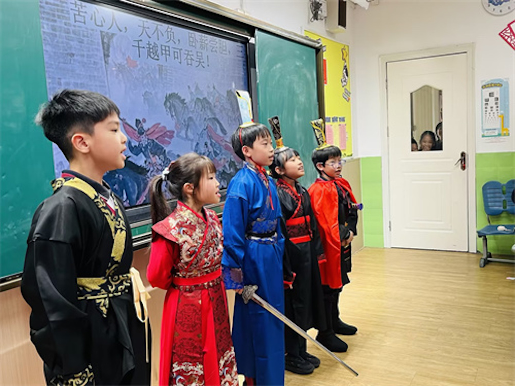 AC三3班以“读行天下”为特色,本学期深入阅读《林汉达历史故事集》后,魏老师引导学生选取与苏州相关的历史故事,自主改编为适合表演的剧本。同学们分为五组,经过精心排练,于家长会上生动演绎了“孙武练兵”“卧薪尝胆”“干将莫邪”“伍子胥建苏州城”和“白居易修山塘街”五个经典故事,获得家长一致称赞。演出后,魏老师鼓励家长利用周末带孩子走进苏州博物馆、考古馆等场所,践行“知行合一”,在行走中延续阅读、拓展学习。