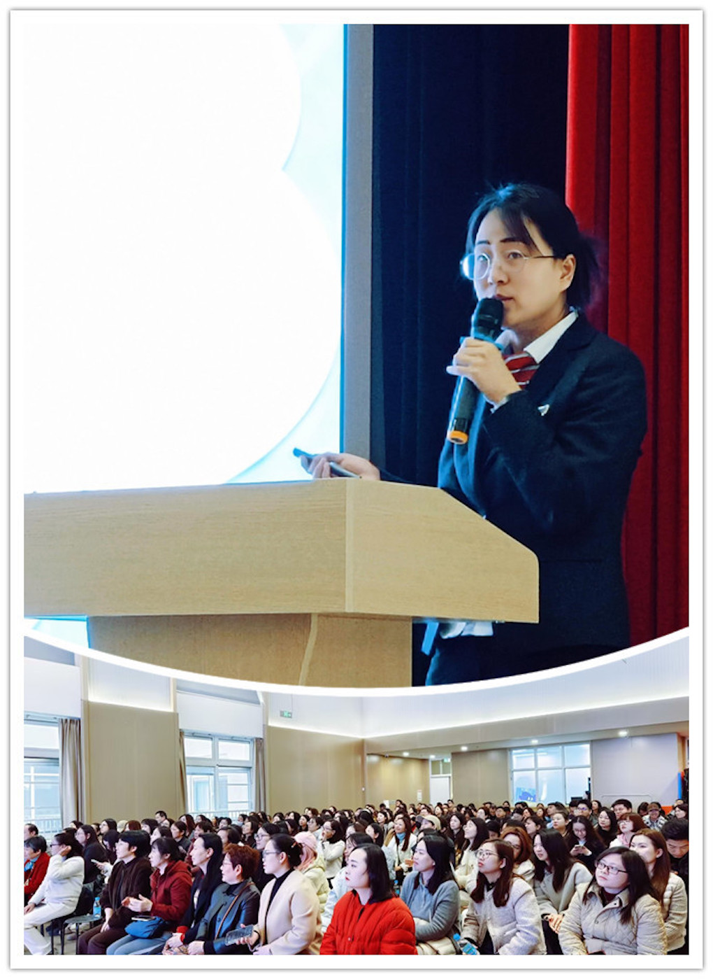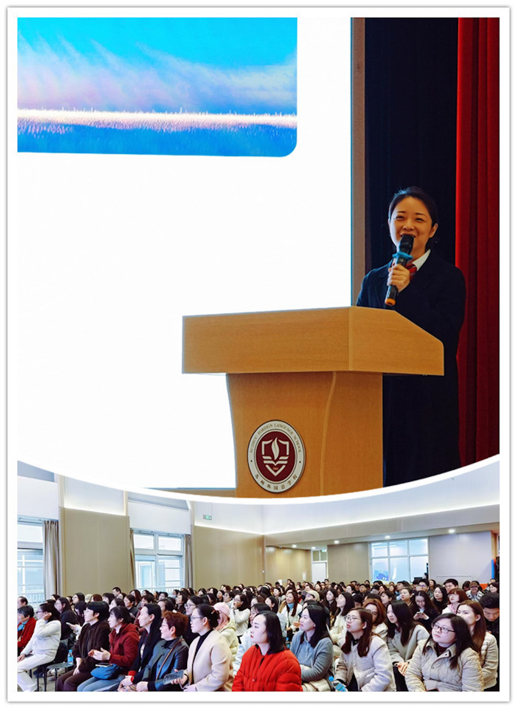 教导处王园媛主任总结讲话,首先回顾上一学期学校育人硕果:教师团队在省基本功竞赛、优质课比赛中斩获一等奖;学生发展亮点纷呈,国际升学屡创新高,英国G5院校预录取107枚,全美TOP70、香港TOP5等院校录取成果丰硕。随后,王主任从三大维度解读AI时代学校角色转型:一是打破学科壁垒,推动跨学科融合课程建设,适配AI时代跨学科问题解决需求;二是推动学校从标准化知识传授场所,转型为学生全面成长的共同体,涵盖学习、实践、社交、情感支持等多元场景;三是构建开放教育生态,加强与企业、社区、科研机构合作,引入外部资源,为学生提供真实社会场景下的实践与科研机会。