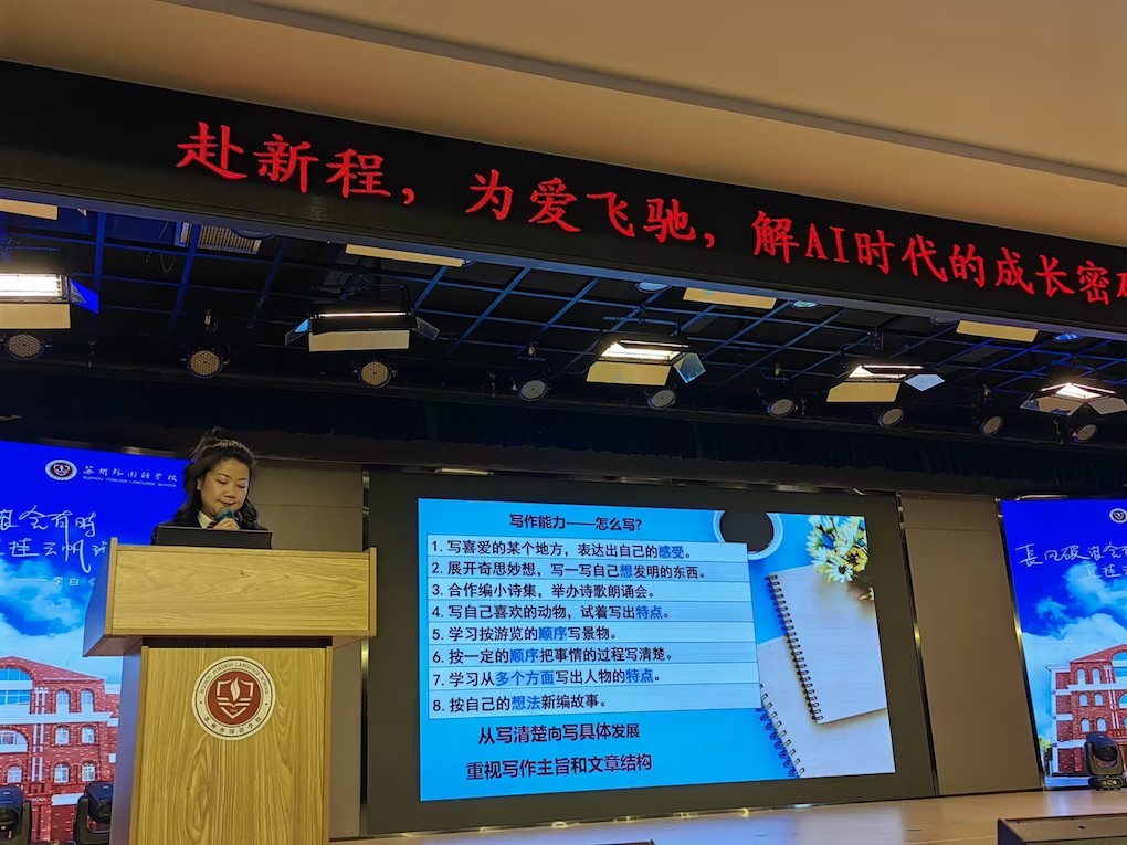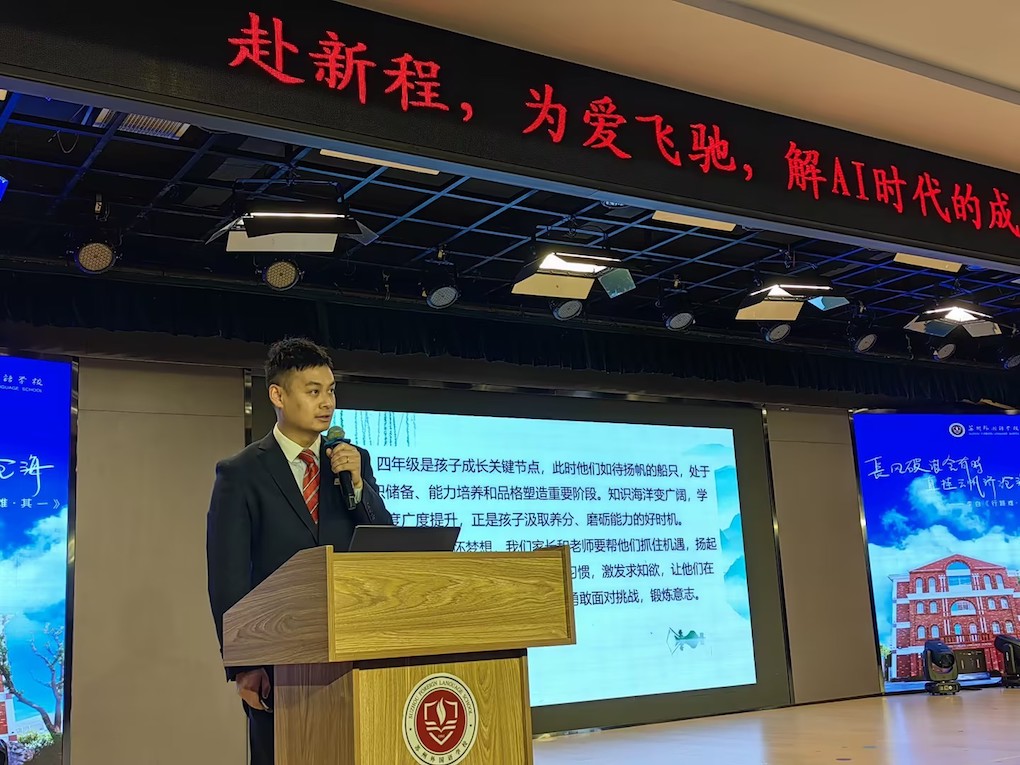 会议尾声,教导处蔡主任进行了学校办学成就分享,鼓励家长立足当下,目标长远,家校合力,同向发力,四年级的孩子们定能在新学期解锁成长新技能,在AI时代的浪潮中稳步前行,收获全面而有个性的发展。