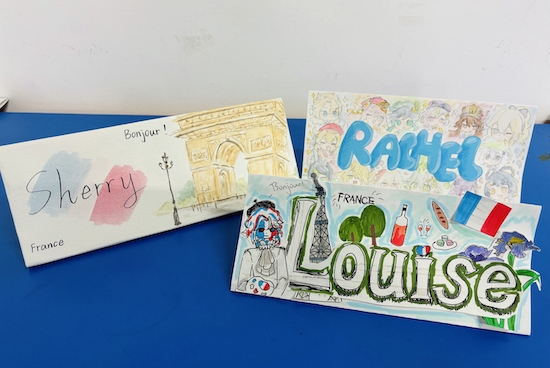 在这场大赛中,学生们的创意层出不穷,他们用手中的画笔,将每一张姓名卡变成了一件件独一无二的艺术品。这些姓名卡,有的如同莫奈的《日出》一般,色彩斑斓,生机勃勃;有的则带着梵高《星空》的神秘与深邃,引人遐想;还有的姓名卡,像巴黎铁塔一样,洋溢着浪漫与深情,或是像法国国旗那样,象征着自由、平等与博爱。