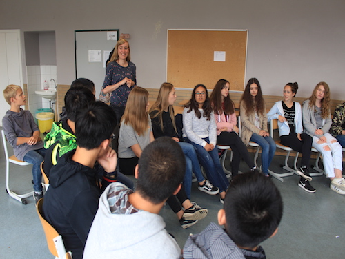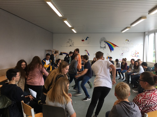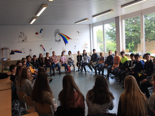 7月2日的下午16时,Lindlar高级文理中学的两位老师、每个住家家庭和我们的学生一同来到了学校参加小型的欢迎会。细心热情的住家家庭带来了自己烘培的蛋糕和新鲜的水果,互相交流第一天的住家生活。我们的学生对接待他们的德国住家非常满意,也和新结识的德国住家小伙伴相处地十分融洽。在品尝了蛋糕和水果后,Knut老师带领学生们做起了破冰游戏,这又加深了两国国家的学生对彼此的了解。