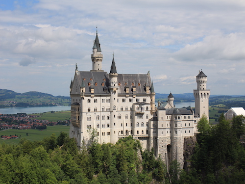 多少人踏遍千山万水来到这里,无非是了却心中的一个童话梦。我们登上了最佳观景点:玛利亚桥,拍摄下了最童话的瞬间。桥底是拼接的木质地板,踩在上面还咯吱咯吱响地上下浮动。城堡山脚下的阿尔卑斯湖的湖水清澈见底,山水之间的南德田园风光尽收眼底,让每一个人都十分赞叹眼前的这一幕幕明信片似的美景。