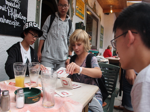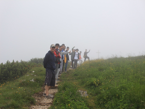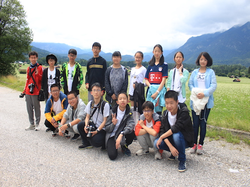 在苏外学习德语的期间,苏外的孩子们都十分希望海蒂这部电影,电影中的阿尔卑斯山脚下的无限辽阔的风光令孩子们魂牵梦萦。这次我们去了南德Garmisch-Partenkirchen,阿尔卑斯山区的空气非常的清新,首先我们一起前往了帕特纳赫谷,它是由帕特纳赫河在岩石中刻划出来的。由于德国最高峰楚格峰的观景台在维修,所以我们乘坐缆车登上了旁边的阿尔卑斯峰,山峰高约2628米,薄雾笼罩下的山顶犹如仙境,我们的学生在山顶的纪念册上骄傲的留下了自己的名字。