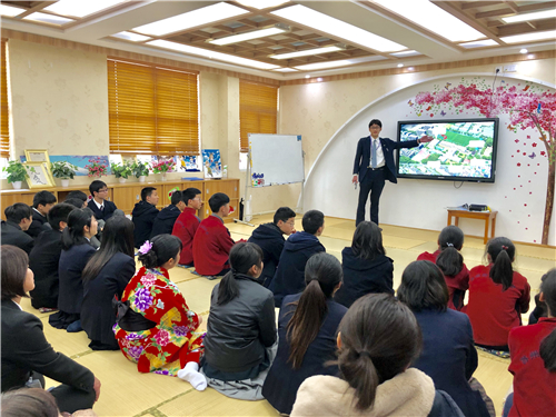 董彬校长指出“在去年9月份结束的中日新时代研讨会中,中日双方达成了“中日友好的未来在于青年”的共识。苏州外国语学校一直致力于培养富有国际视野的新时代青少年。每年苏外会积极地与当地的友好学校-日本人学校及日本的顶尖名校进行友好交流与研学活动,我们为学生精心打造了两条赴日研学线路,每年都有学生通过赴日研学深入感受日本文化。中日两国是一衣带水的邻邦,中日友好源远流长。”