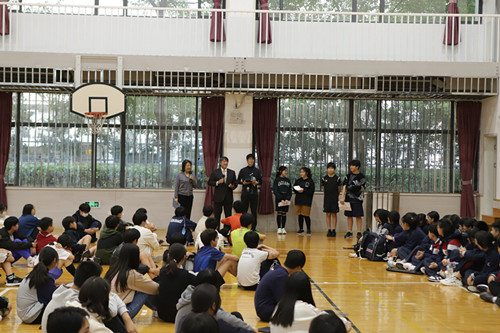 三年疫情给世界按下了暂停键,一年一度的中日友好交流活动也因此中断。2024年11月18日下午3点迎来了新的开始,我校与日本人学校的交流活动重启,在5名老师的带领下初二日语班和国际高一日语班同学们一个个满怀激动的心情踏入了日本人学校展开了两国青少年之间的跨文化交流之旅。苏州日本人学校全校师生以极高的热情欢迎我校师生。欢迎仪式上野吕校长对我校师生的到来表达了热烈欢迎并介绍了日本人学校以及强调了此次交流活动对于两国青少年建立友好情谊的重要性。